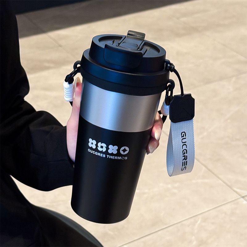 Cute Star Print Kids Water Bottle with Flip Straw & Carry Strap